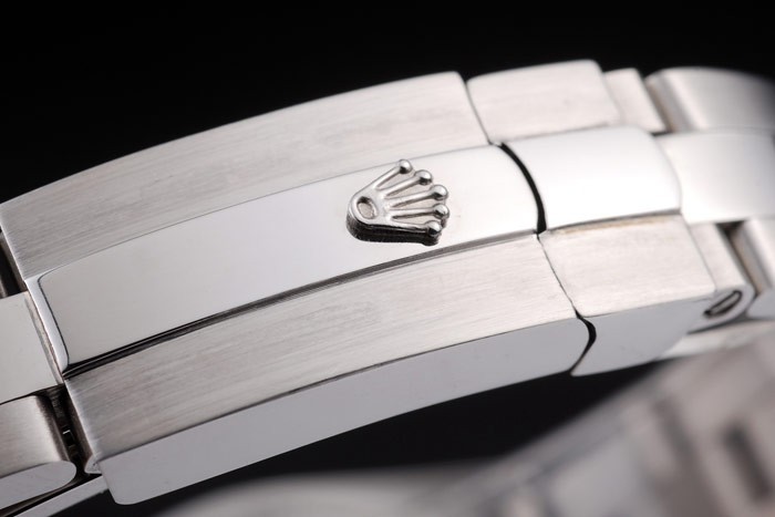 Caso de aço inoxidável: Bracelet: Bracelete de elo de aço inoxidável escovado com Rolex Gravado Folha de Implantação Dobrado Exibindo o logotipo Rolex