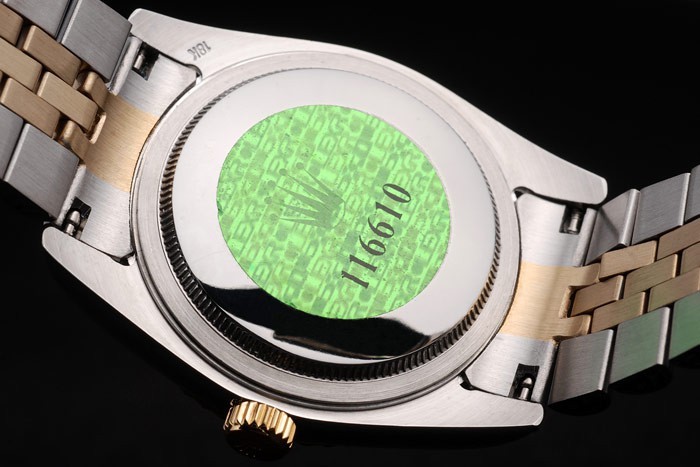 Voltar: capa de aço inoxidável de volta com o selo verde do logotipo do Rolex