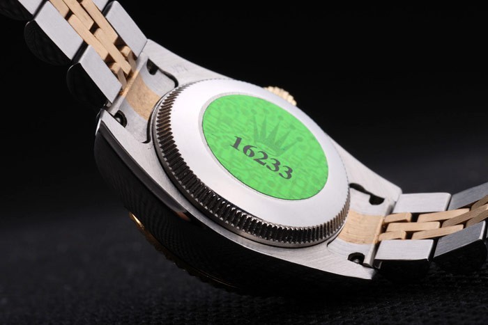 Voltar: caso de aço inoxidável push-in de volta com o selo verde do logotipo de Rolex