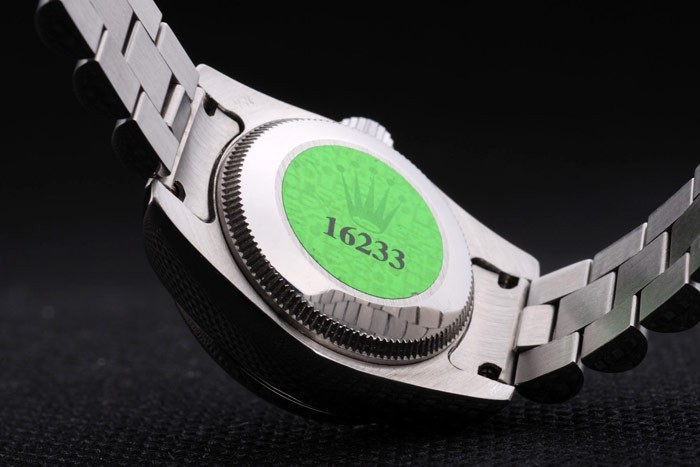 Voltar: caso de aço inoxidável push-in de volta com o selo verde do logotipo de Rolex
