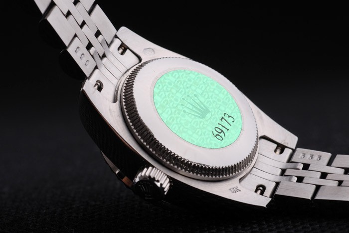 Voltar: caso de aço inoxidável push-in de volta com o selo verde do logotipo de Rolex