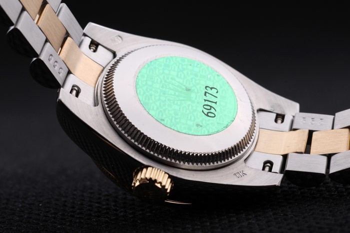 Voltar: caso de aço inoxidável push-in de volta com o selo verde do logotipo de Rolex