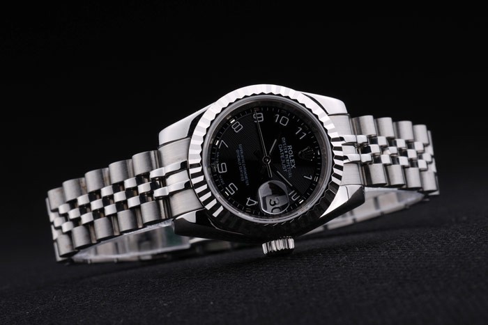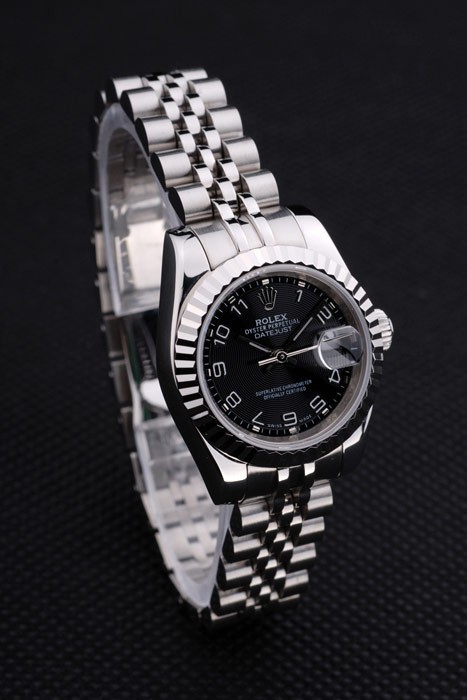 Caso de aço inoxidável: Pulseira: Bracelete de aço inoxidável escovado e polido com rolex gravando fecho escondido exibindo o logotipo Rolex