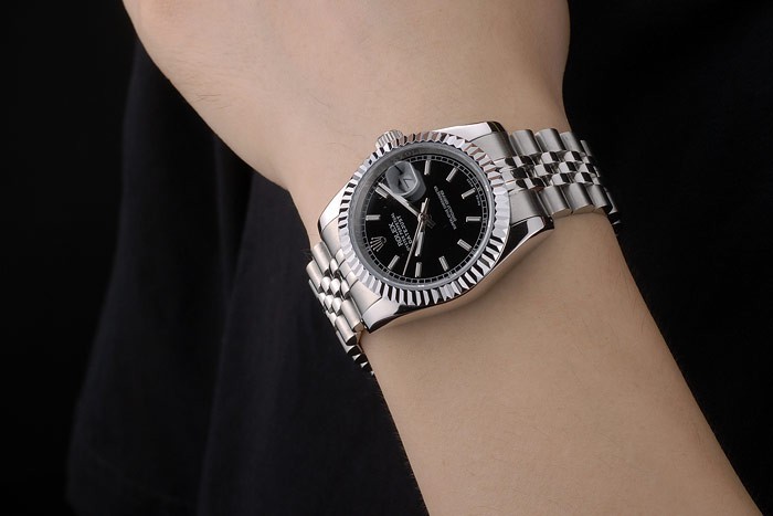 Caso de aço inoxidável: Pulseira: Bracelete de aço inoxidável escovado e polido com Gravura Rolex Clasp escondida exibindo o logotipo Rolex