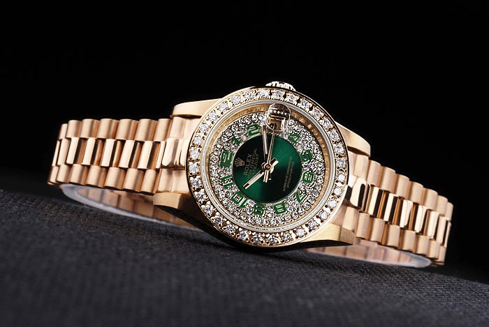 Voltar: 18k Amarelo banhado a ouro de aço inoxidável de aço de volta com verde Rolex logotipo selo