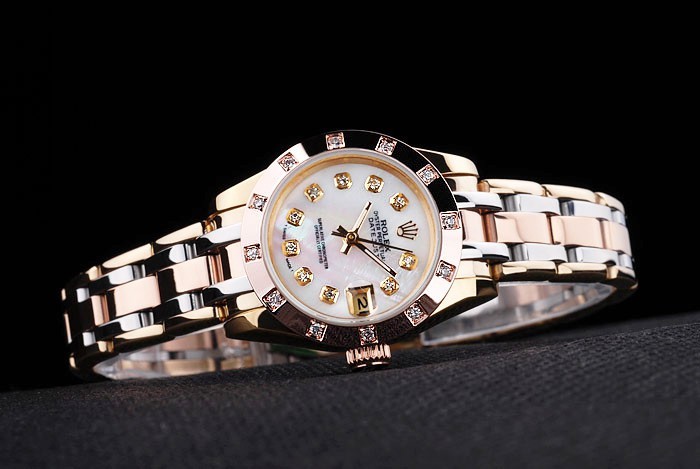 Clasp de relógio: fecho de aleta de vidro: cristal de safira: 18k rosa -Gold chapeado coroa de aço de aço com logotipo Rolex