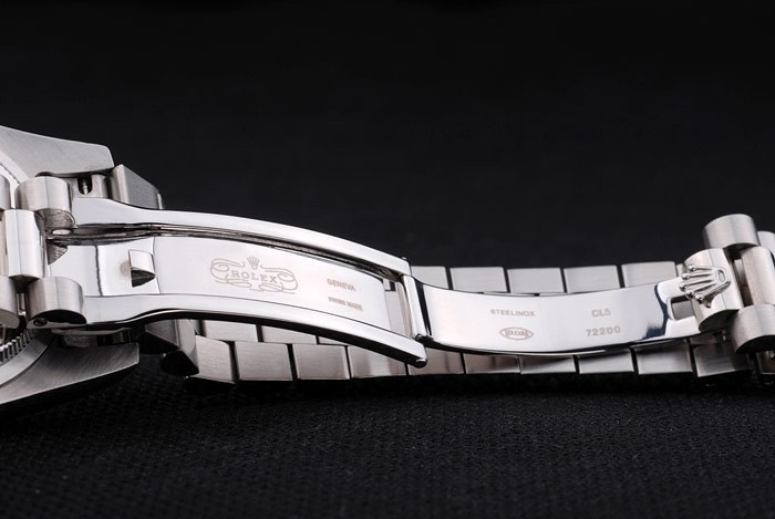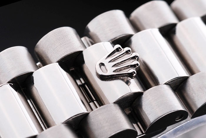 Pulseira: pulseira de aço inoxidável escovado e polido com Gravura de Rolex Clasp escondida exibindo o logotipo Rolex