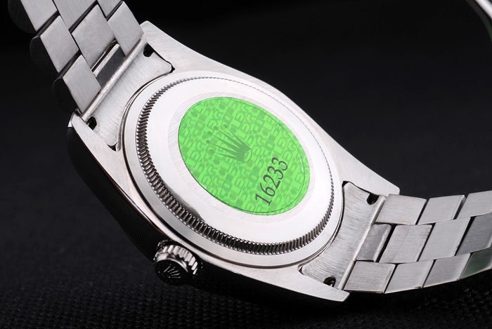 Voltar: caso de aço inoxidável push-in de volta com verde Rolex logotipo selo