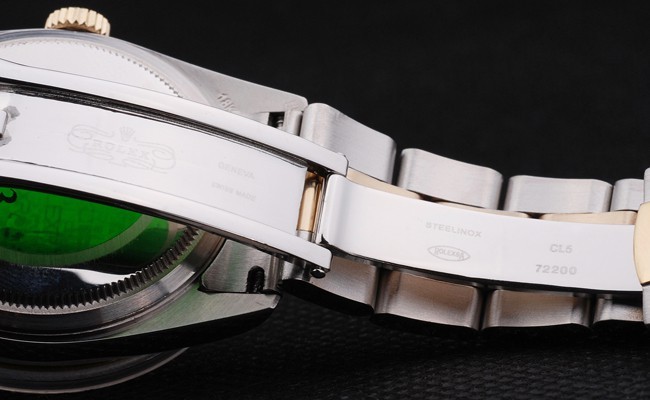 Voltar: capa de aço inoxidável de volta com o selo verde do logotipo do Rolex