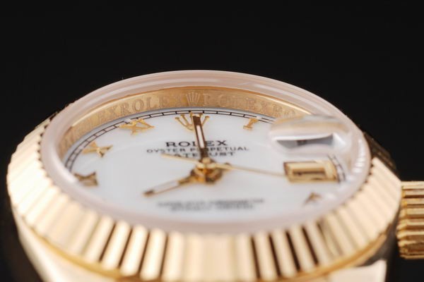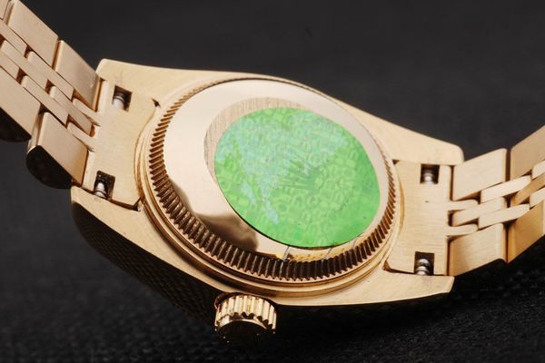 1back: empurre para trás em ouro amarelo 18k com etiqueta verde Rolex e marcações