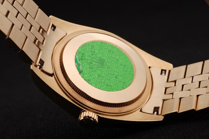 Voltar: Empurre para trás em ouro amarelo 18k com etiqueta verde Rolex e marcações