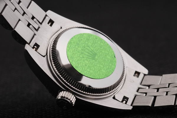 1back: Empurre em aço inoxidável para trás com a etiqueta verde Rolex e marcações