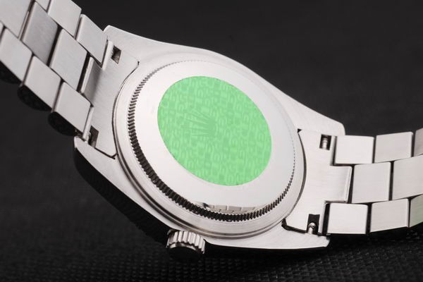 Voltar: Empurre em aço inoxidável para trás com a etiqueta e marcas verdes de Rolex