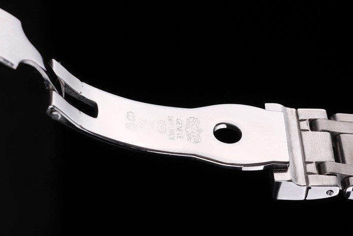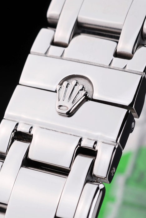 Caso de aço inoxidável: Pulseira: Bracelete de elo de aço inoxidável polido com gravura de Rolex fecho escondido exibindo o logotipo Rolex
