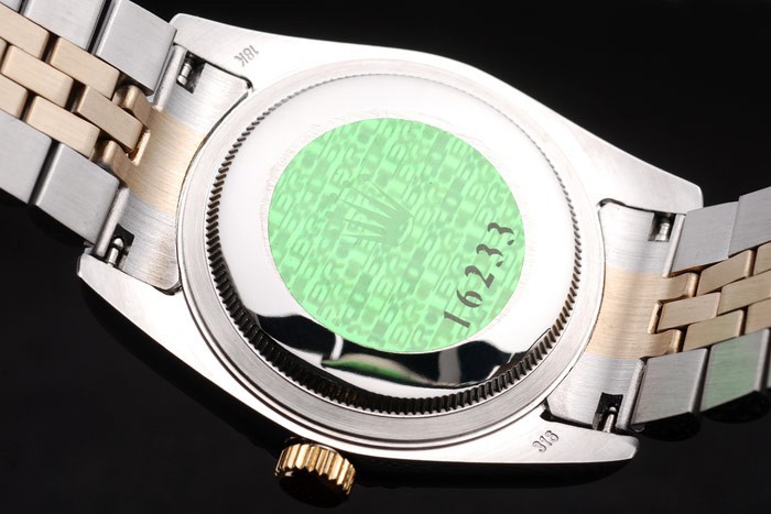 Voltar: capa de aço inoxidável de volta com o selo verde do logotipo do Rolex