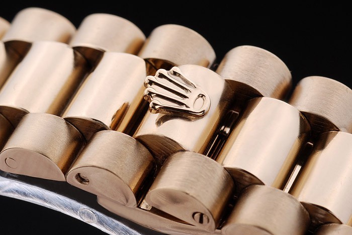 Cor: Pulseira : 18k Amarelo Banhado Aço Inoxidável Link Bracelete com Gravura Rolex Gravura Clasta Escondida Exibindo o logotipo Rolex