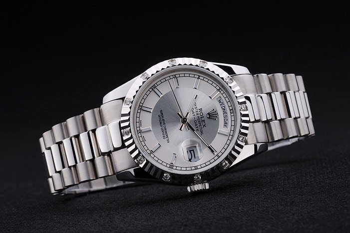Capa: Pulseira: Pulseira: Bracelete de aço inoxidável escovado e polido com Gravura Rolex Clasp escondida exibindo o logotipo Rolex