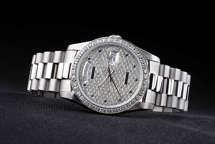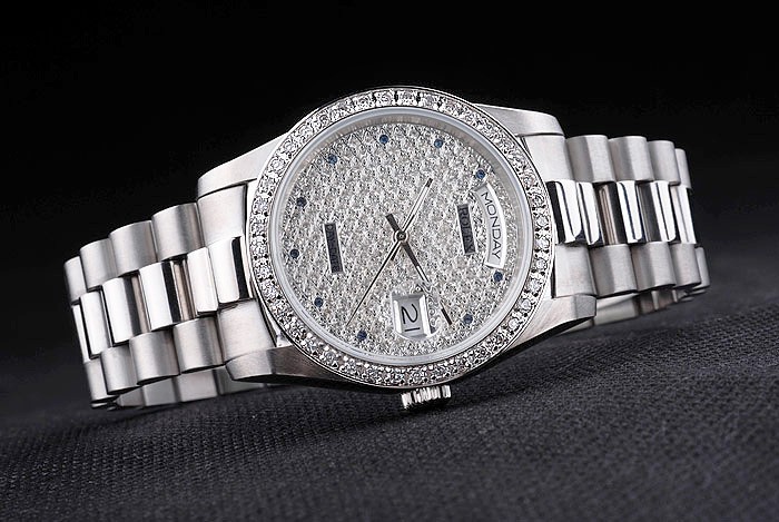 Bezel: Bezel de aço inoxidável polido com carrinho de cristal MARCADORES DE BANDA: Aço inoxidável