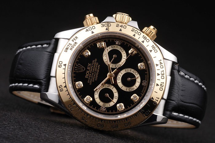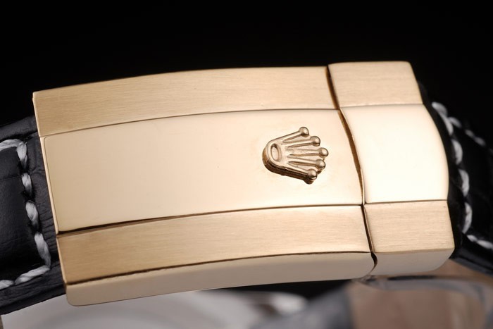 Capa de Aço Inoxidável Br>Bracelete: Cinta de couro crocodilo preto com Rolex gravado 18k ouro amarelo fold-in deployment fechar o logotipo Rolex