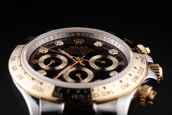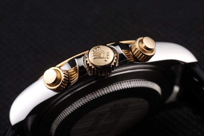 coroa: 18K coroa de ouro amarelo com logotipo de Rolex e coroas menores em ambos os lados da espessura do caso: 13 mm