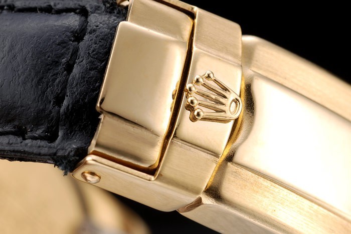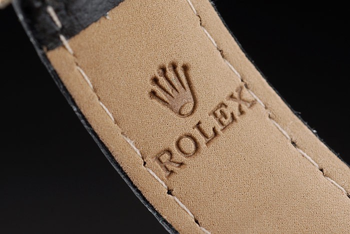 Pulseira: Calor Rolex Calça de couro de crocodilo preto gravado com fecho de implantação de ouro amarelo gravado com logotipo Rolex no topo