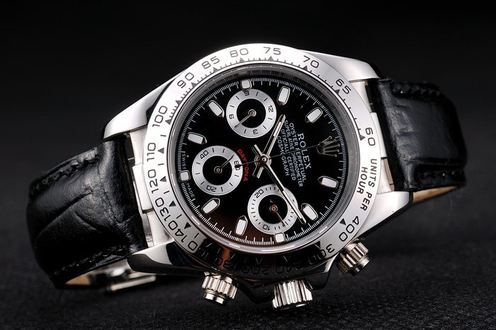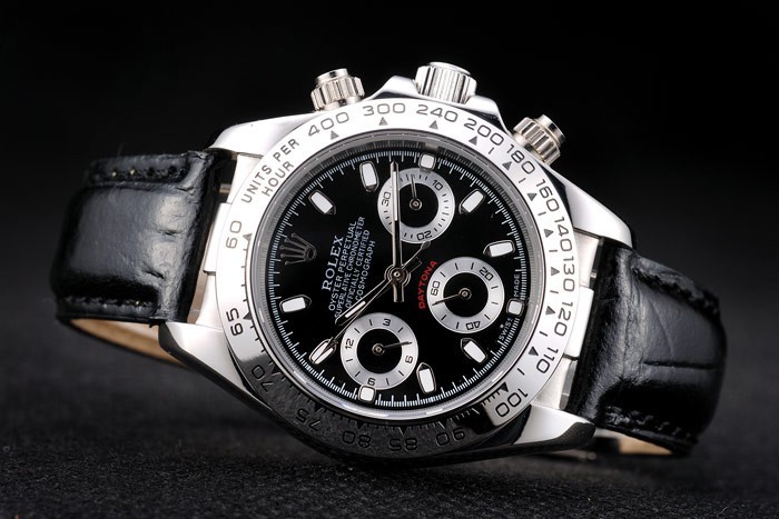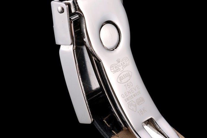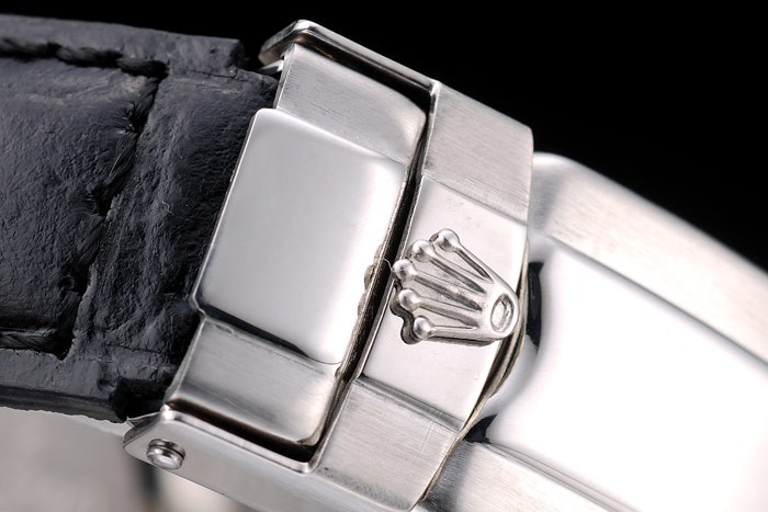 Pulseira: Calor Rolex Calça de couro de crocodilo preto gravado com fecho de implantação de aço inoxidável gravado com logotipo de Rolex na parte superior