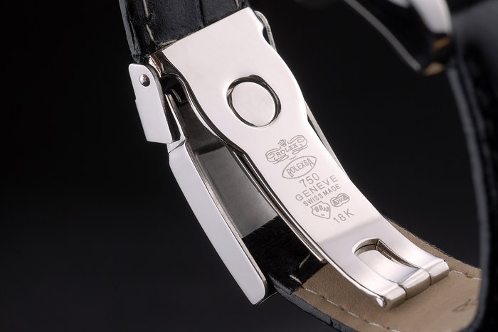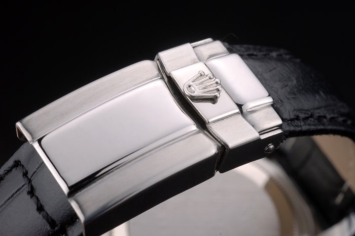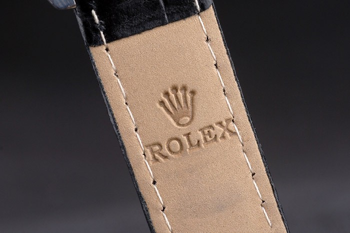 Pulseira: Calor Rolex Calça de couro de crocodilo preto gravado com fecho de implantação de aço inoxidável gravado com logotipo de Rolex no topo