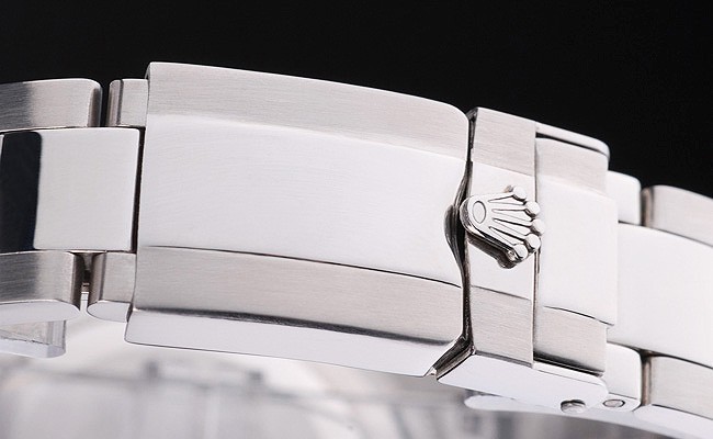 Caso de aço inoxidável: Bracelete: escovado e Pulseira de elo de aço inoxidável polido com fecho de implantação de gravura Rolex exibindo o logotipo Rolex