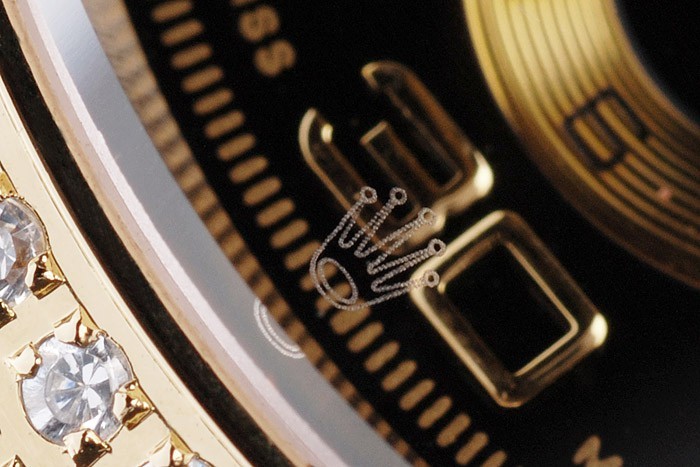 Clasp de relógio: fecho de segurança de vidro: cristal de safira: coroa de ouro: coroa de ouro tonificada com logotipo Rolex e duas coroas adicionais em ambos os lados de TI