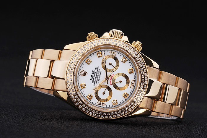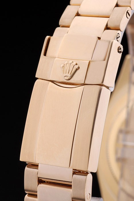 Pulseira de link de aço inoxidável de ouro com fecho de implantação de gravura de Rolex exibindo logotipo Rolex