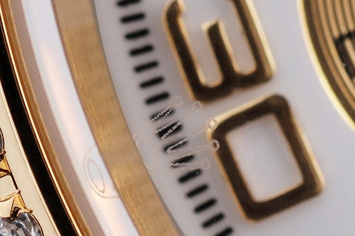 Clasp de relógio: fecho de segurança de vidro: cristal de safira: coroa de ouro: coroa de ouro tonificada com logotipo Rolex e duas coroas adicionais em ambos os lados de TI