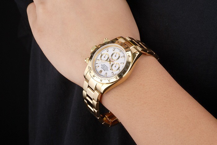 Cor: 18k Caso de aço inoxidável banhado a ouro: bracelete tonificado ouro pulseira de link com garganta Rolex Clasp Exibição de logotipo Rolex