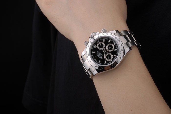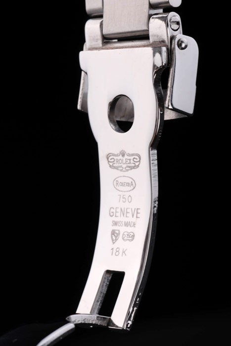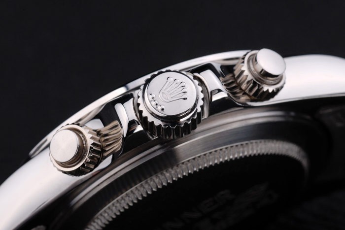 coroa de aço inoxidável: polido Coroa de aço inoxidável com logotipo Rolex e duas coroas adicionais em ambos os lados da espessura do caso: 13 mm
