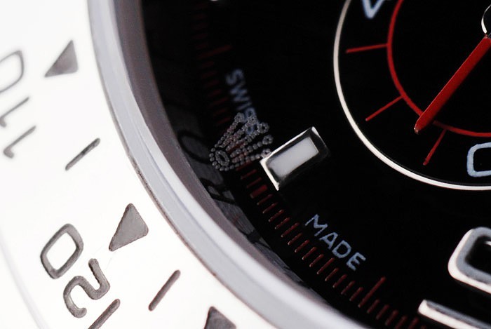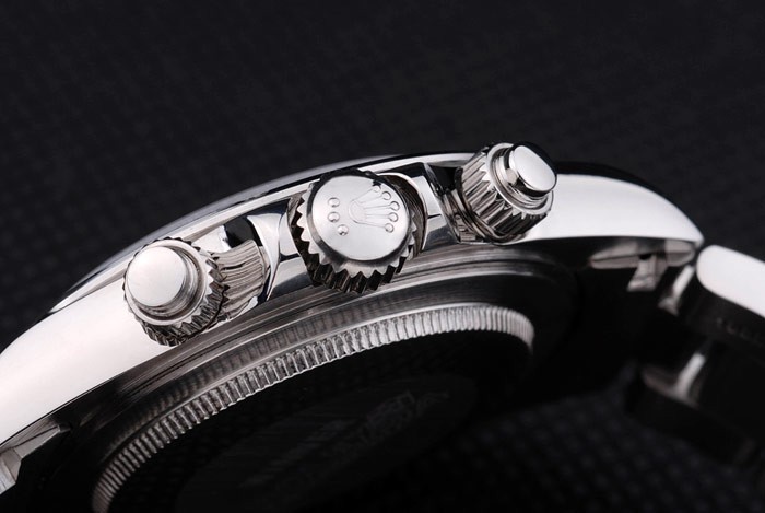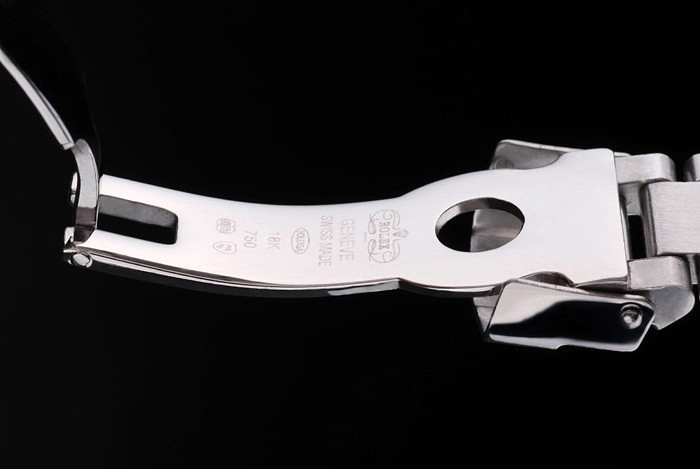 de vidro: cristal de safira: coroa de aço inoxidável polido: coroa de aço inoxidável polido com logotipo de Rolex e duas coroas adicionais em ambos os lados
