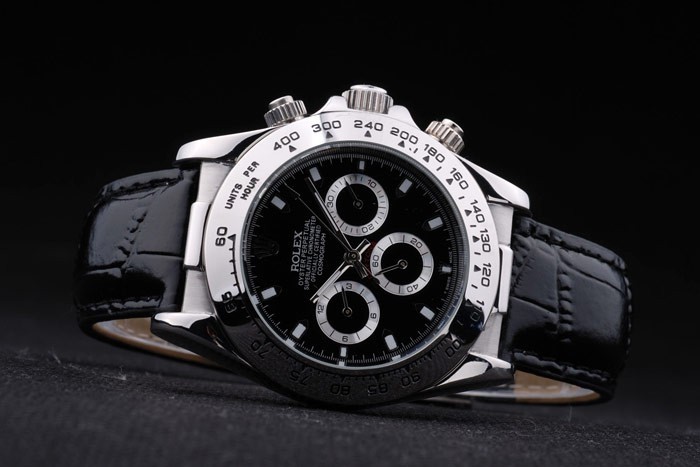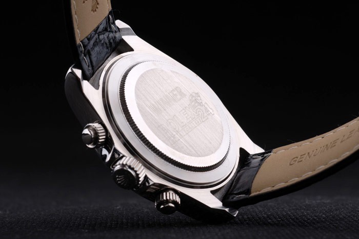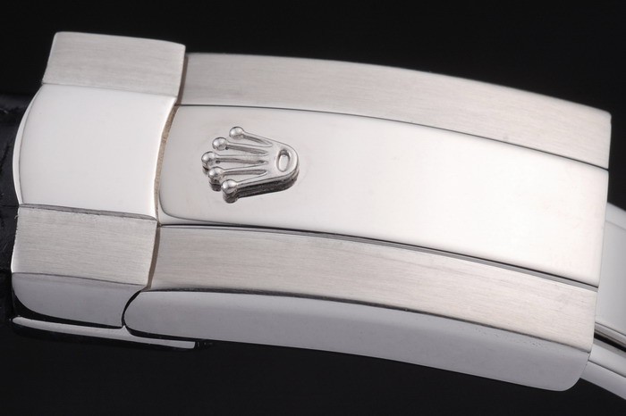 Cor: Caso de aço inoxidável polido Br>Pulseira: Patente de Cobra Preta Cinta de couro com rolex e logotipo gravura e fecho de implantação de aço inoxidável exibindo logotipo Rolex