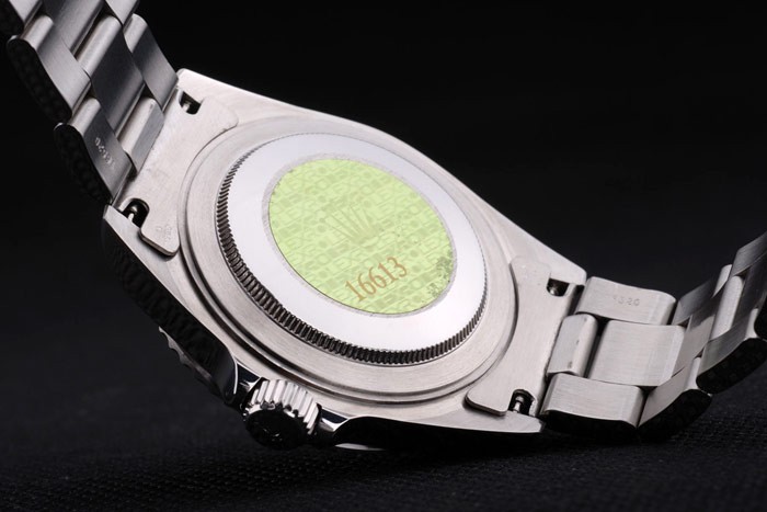 Voltar: capa de aço inoxidável de volta com o selo de gravura de Rolex verde