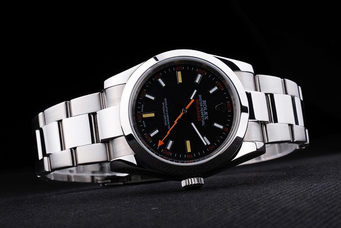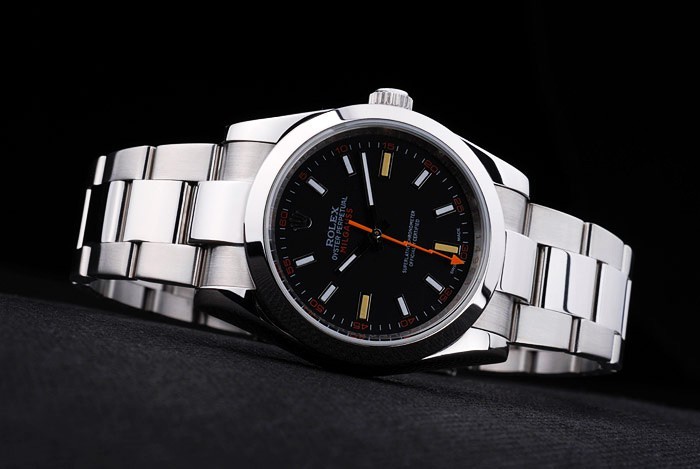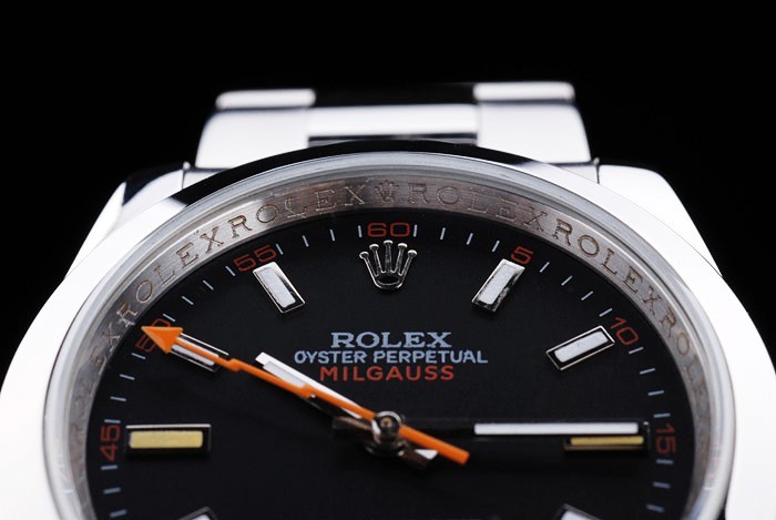 Caso de aço inoxidável: Pulseira: Bracelete de elo de aço inoxidável escovado e polido com Rolex gravando dobra no fecho exibindo o logotipo Rolex