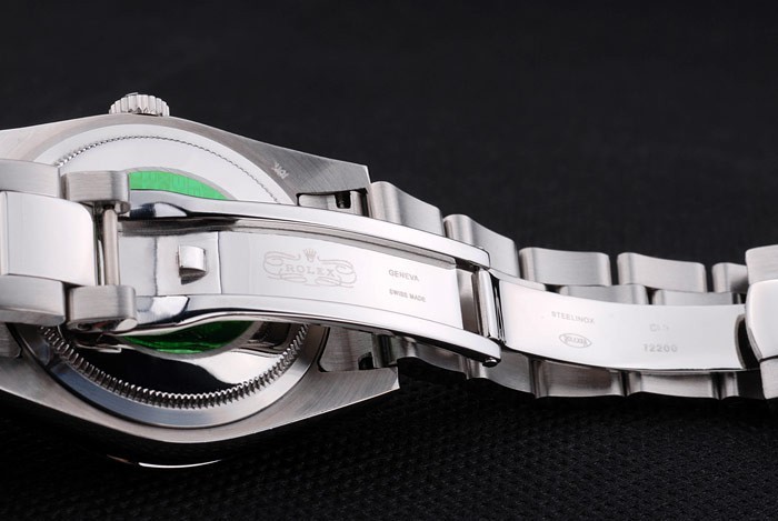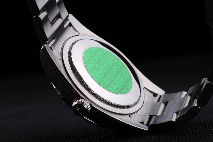 Voltar: caso de aço inoxidável push-in de volta com green rolex gravando selo