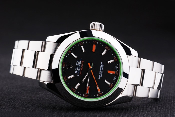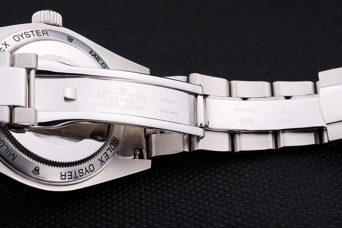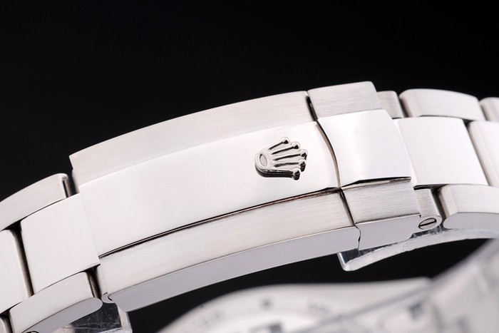 Capa de Aço Inoxidável: Pulseira: Inoxidável escovado e polido Corrente de elo de aço com fold sobre fecho e rolex coroa gravura