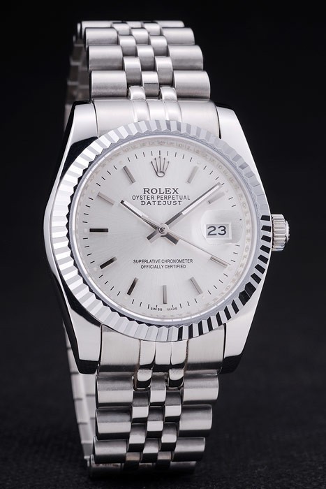 Pulseira: Bracelete de elo de aço inoxidável escovado e polido com Logotipo Rolex Clasp escondido