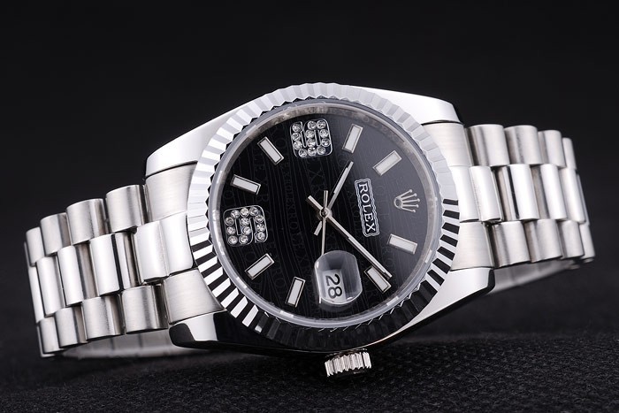 Cor: Caso de aço inoxidável polido Pulseira: pulseira de link de aço inoxidável polido com fecho de implantação de logotipo Rolex