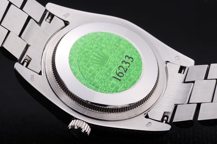 Voltar: Snap-in de aço inoxidável Voltar com etiqueta verde de autenticidade Rolex