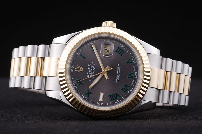 Caso de aço inoxidável: Bracelete: escovado Aço inoxidável e pulseira de link de ouro amarelo com rolex logotipo escondido fecho