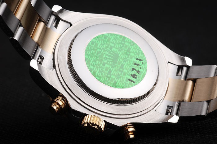 Voltar: Aço inoxidável polido Push-in Back com verde Rolex Logo Selo
