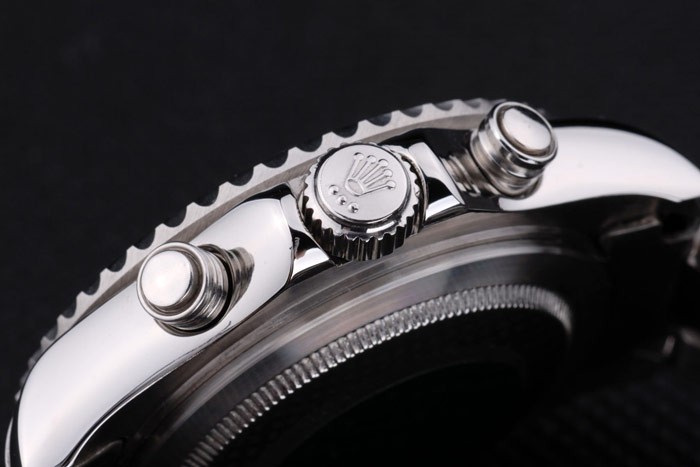 Clasp de relógio: fecho de segurança de vidro: cristal de safira: polido de aço inoxidável Rolex Crown Logo gravado com rodada Coroas de botão de pressão em ambos os lados da espessura do caso: 13 mm de