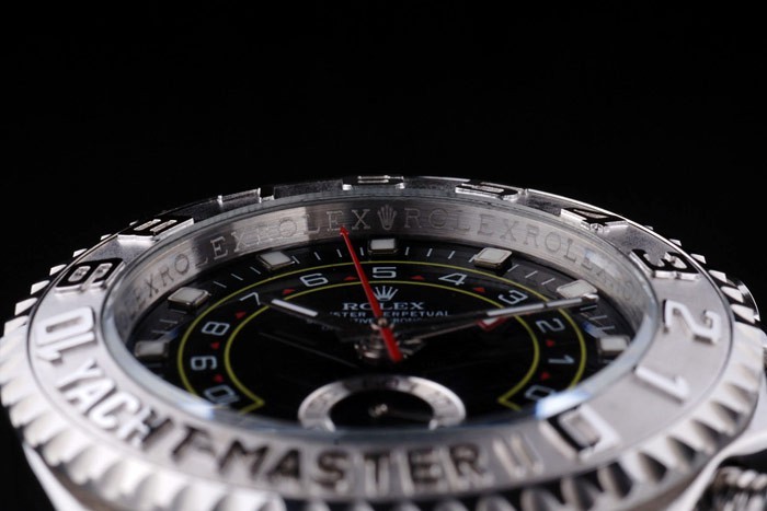 Este relógio de réplica de Yacht-Master II Rolex é um relógio moderno e poderoso para os homens. Com um cronômetro às seis horas, o mostrador é aparado em amarelo e pastel bluesback: Snap-in de aço inoxidável polido traseira com autenticidade de Rolex autocolante de holograma
