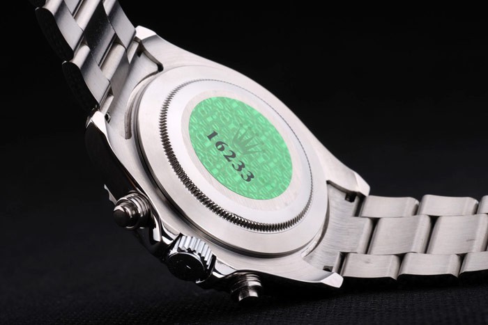 Voltar: caso de aço inoxidável push-in de volta com green rolex gravando selo