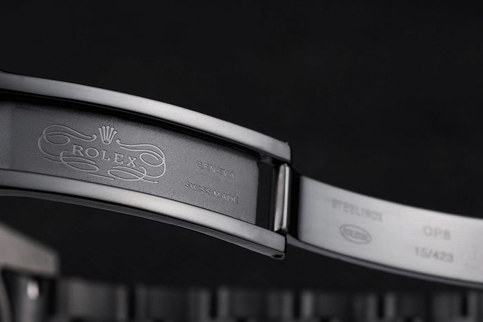 Capa: íon Caso de aço inoxidável banhado a pulseira: Bracelete de link de aço inoxidável de íon com Rolex Gravado fecho de implantação exibindo o logotipo Rolex
