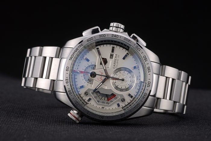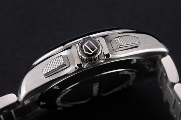 coroa: polido de aço inoxidável coroa de aço inoxidável com tag Heuer logotipo e dois longos coroas de botão de pushwork em ambos os lados junto com uma coroa de corte no lado oposto