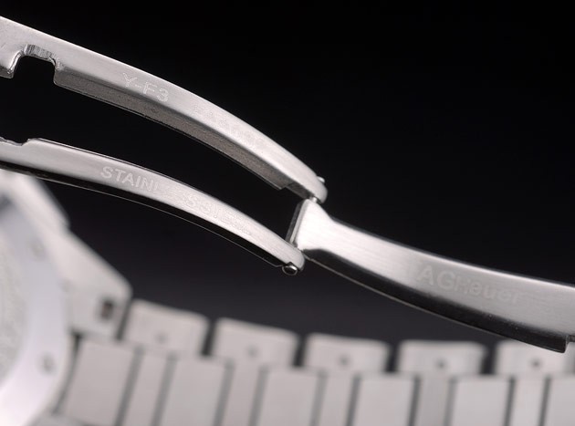 Voltar: Aço inoxidável polido parafusado de volta com tag Heuer gravuras